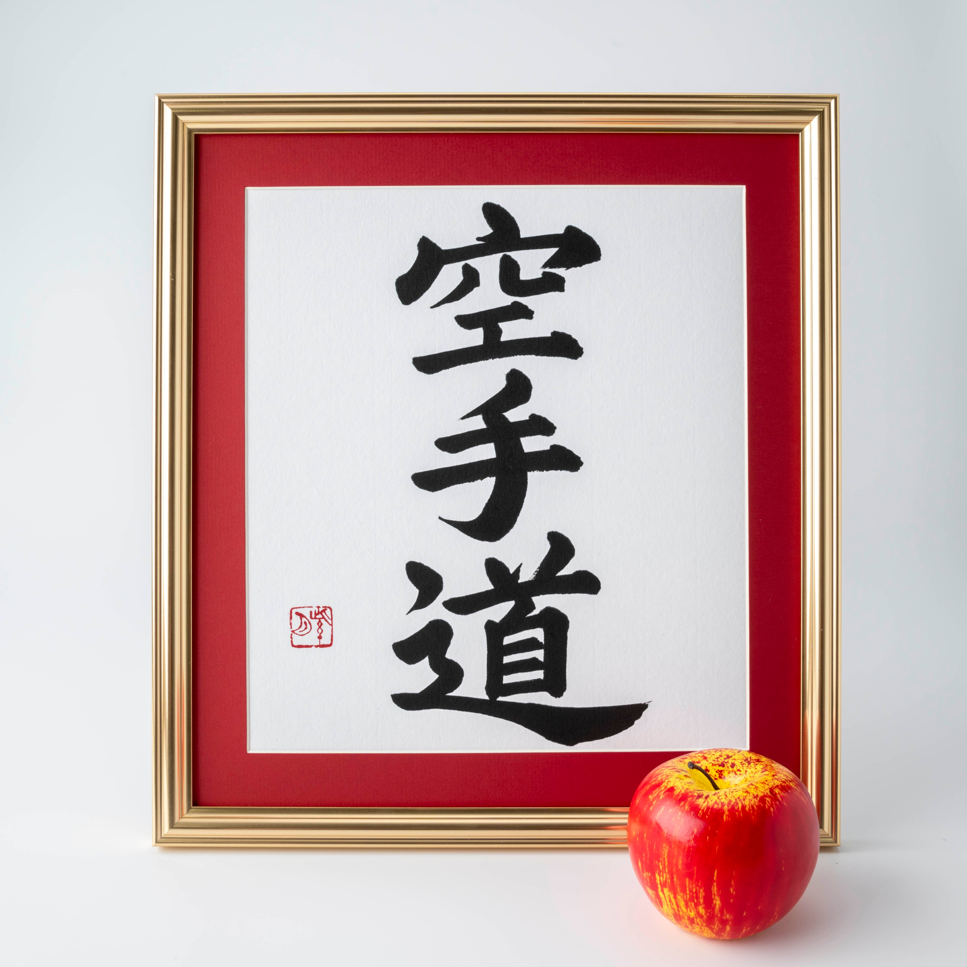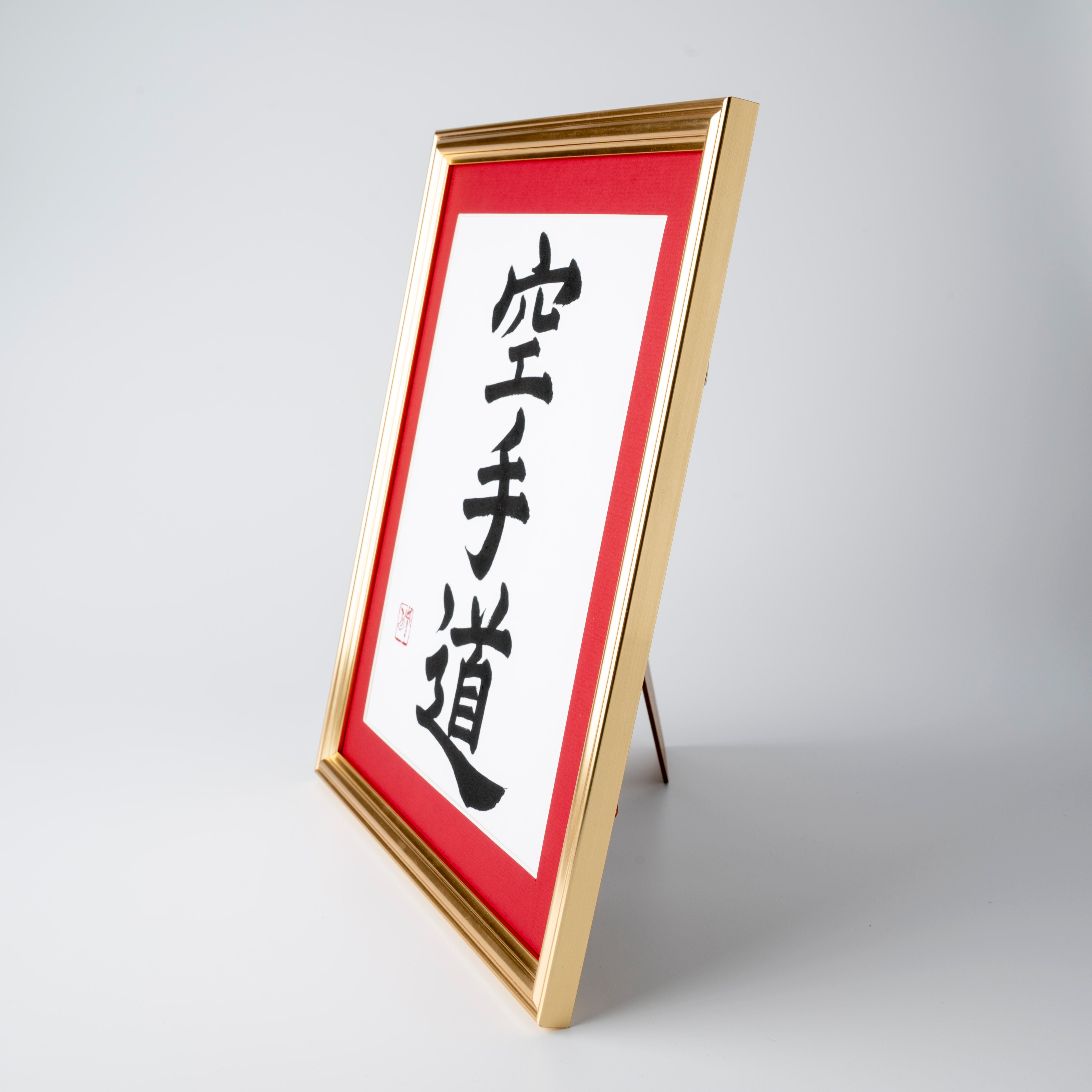 This framed calligraphy artwork features the powerful phrase 空手道 (Karate-do) — not just a martial art, but a lifelong journey of discipline, respect, and inner strength.