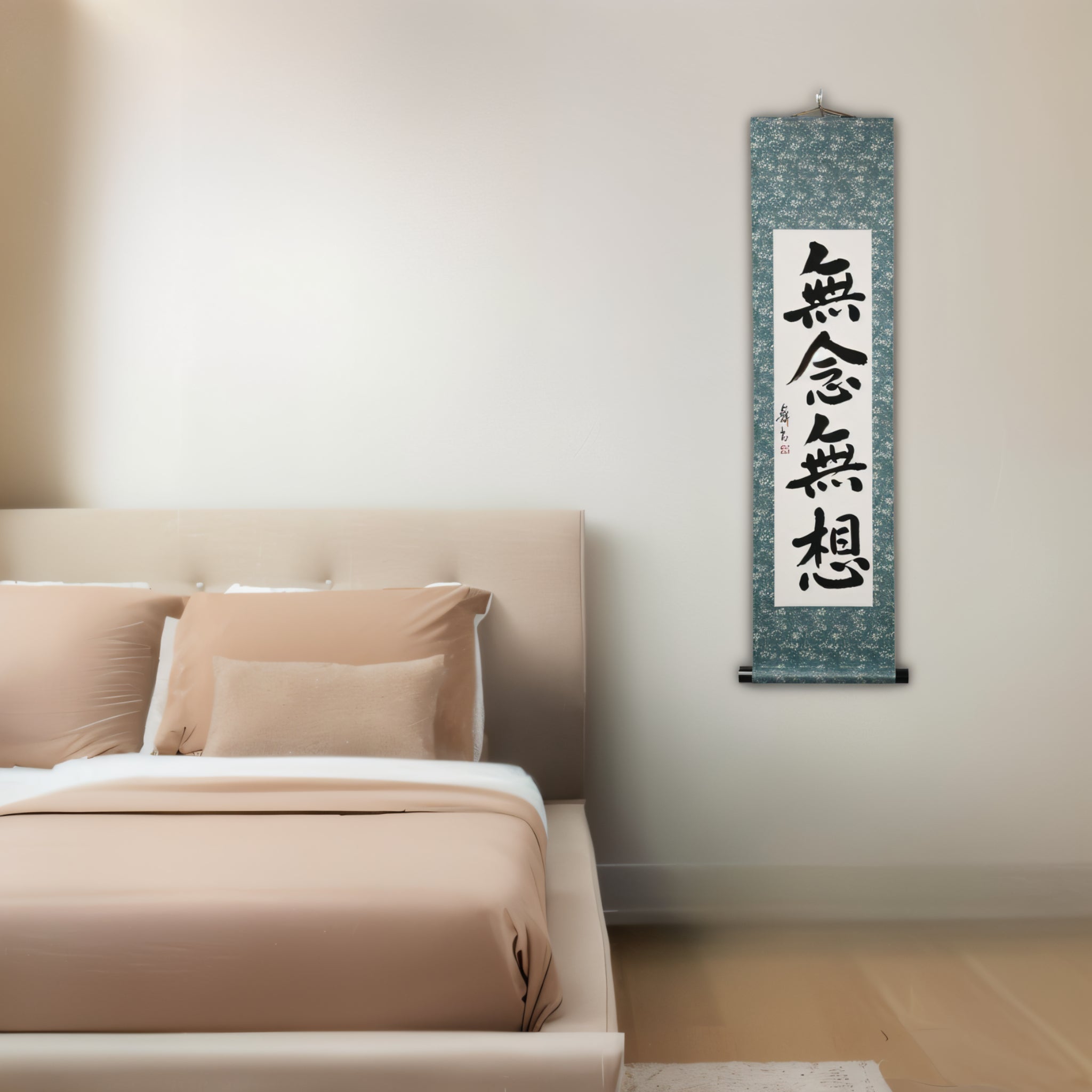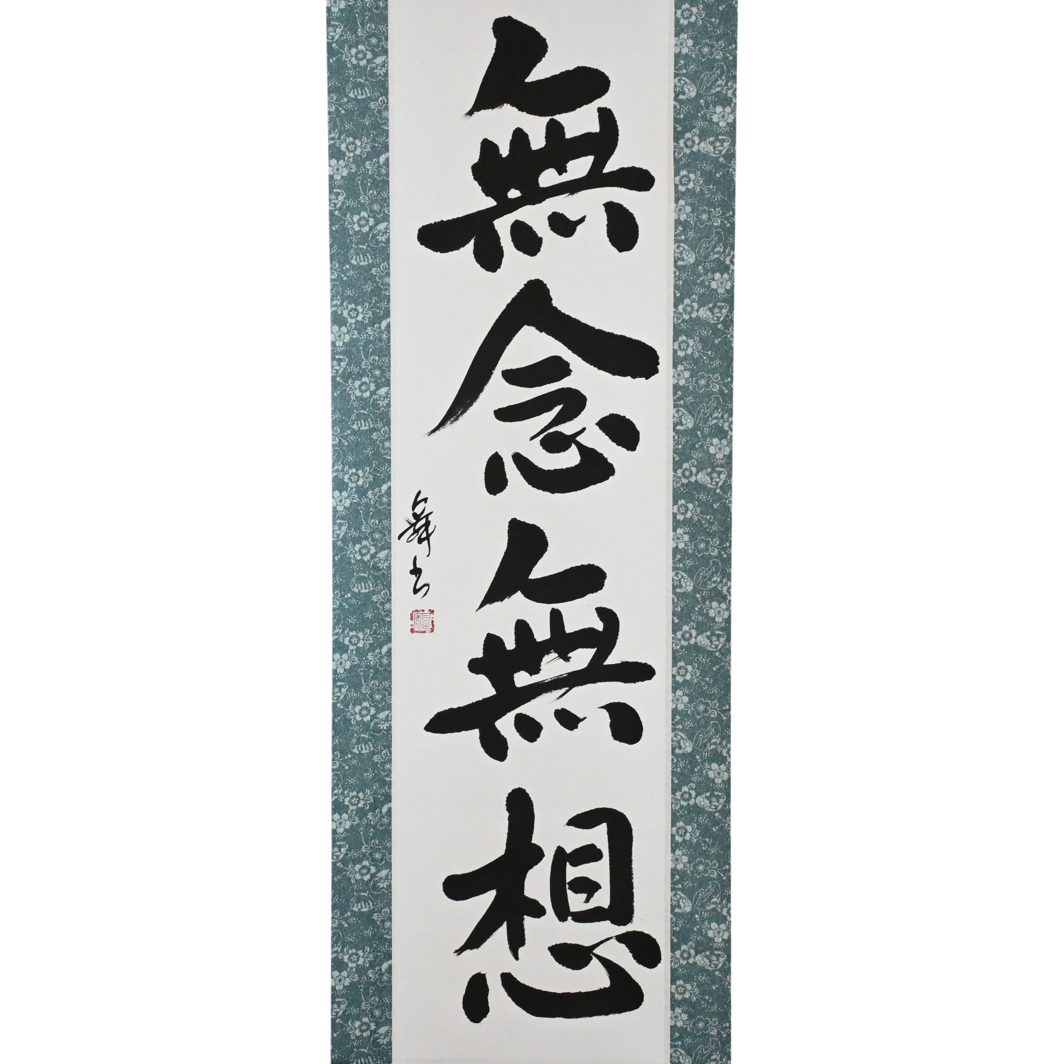 This Japanese calligraphy scroll presents the profound 禅 (Zen) principle 無念無想 (Munen Musō) — a state of mind free from thought and distraction, fundamental to the Samurai’s way. Rooted in both 禅 (Zen) practice and 武士道 (Bushidō), 無念無想 allows the warrior to act with pure presence, responding intuitively and decisively in every moment.
