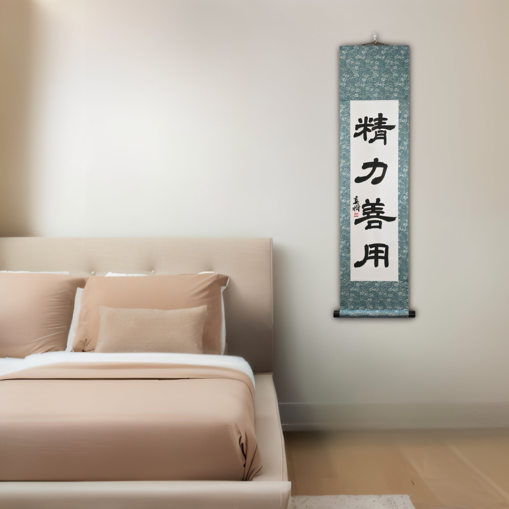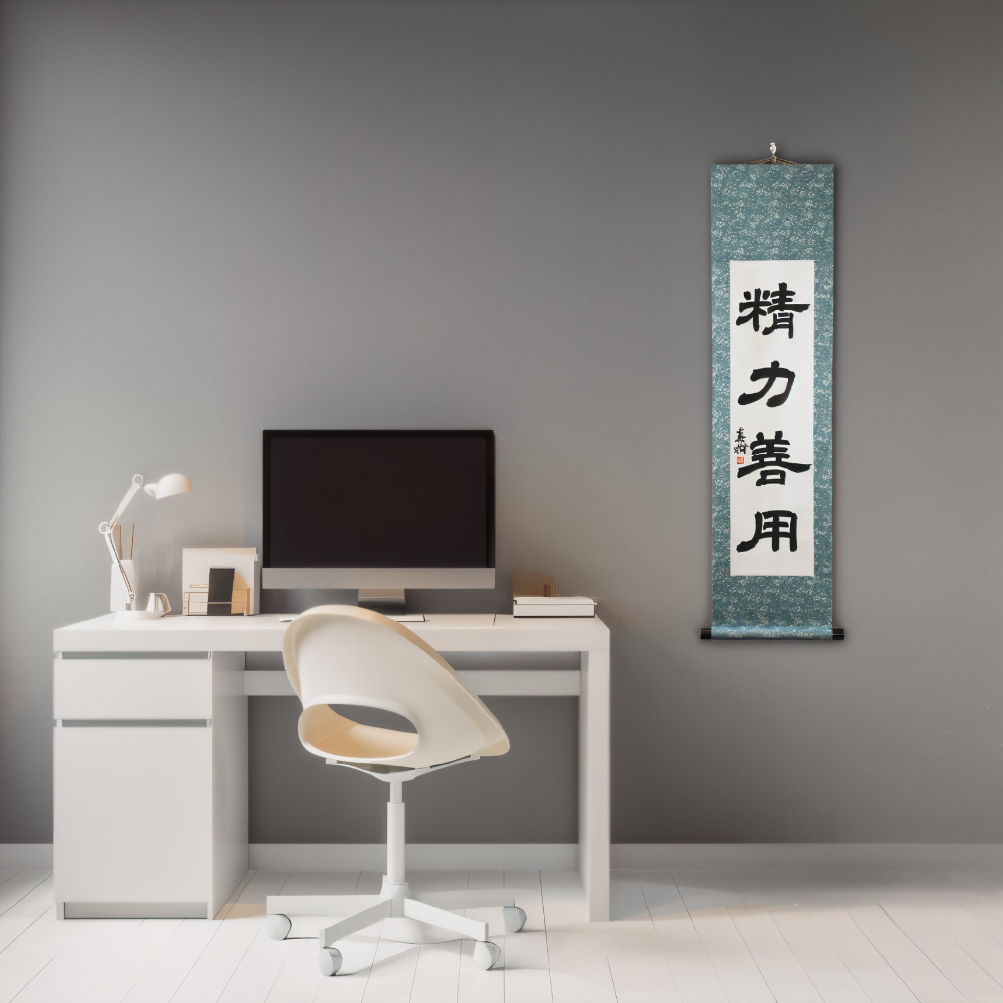 This Japanese calligraphy scroll features the timeless phrase 精力善用 (Seiryoku-Zenyō) — translated as "Maximum Efficient Use of Energy". It is one of the two core principles of Judo, alongside 自他共栄 (Jita-Kyōei, "Mutual Welfare and Benefit"), both established by Judo’s founder, Jigoro Kano (嘉納治五郎).